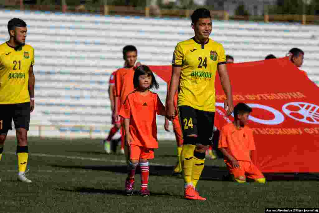 “Алай” жана “Алга” командаларынын Оштогу беттешинин алдында футболчулар оюн талаасында "Күн балдарынын" (даун синдрому) коштоосунда чыкты. Фотоблогер Азамат Алымкулов тарткан сүрөттөрдү сунуш кылабыз. Ата-энелерден, балдардан жана уюштуруучулардан уруксат алынган.