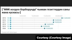 Апта башында journalist.kg сайтына “Каржыдан каржалган кыргыз басылмалары” деген макала жарыяланды. Анын автору Болот Таштаналиев акыркы он жылда Кыргызстандагы жалпы гезиттердин нускасы кескин кыскарып кеткенин байкаган.