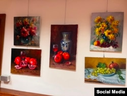 "Жалпысынан 30га жакын эмгегим коюлду. Алардын көбү натюрморт болсо, арасында бирин-серин пейзаждар да бар. Анан сүрөттөрдү алыска жеткирүү оңой болбогондуктан, көлөмү чакан эмгектерди алып бардык. Негизинен англиялыктар кийинки учурда биздин натюрморт жанрындагы эмгектерибизге кызыгып жүргөндүктөн, бул көргөзмөгө да ушул багыттагы сүрөттөрдү арбын койдук. Айрым эмгектерди кызыккан көрүүчүлөр сатып алды. Мен кээ бир сүрөттөрүмдү интернет аркылуу саттым. Негизинен соода ар кандай болот, чакан көлөмдөгү сүрөт болжол менен 600 доллардан жогору бааланат", - деди ал.