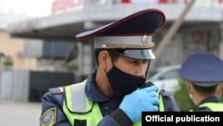 Көчөдө кызмат өтөп жаткан милиция кызматкери Айбек саламаттыгы үчүн кооптонгонуна карабай милдетин аткара берерин айтты: