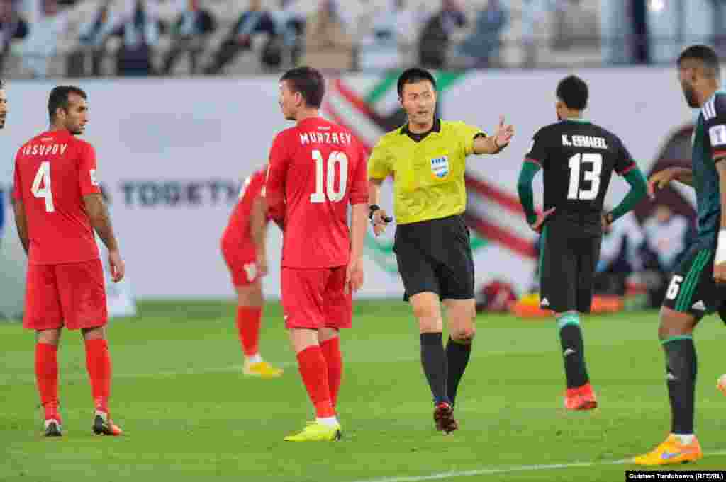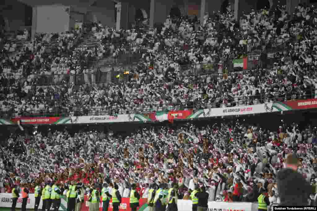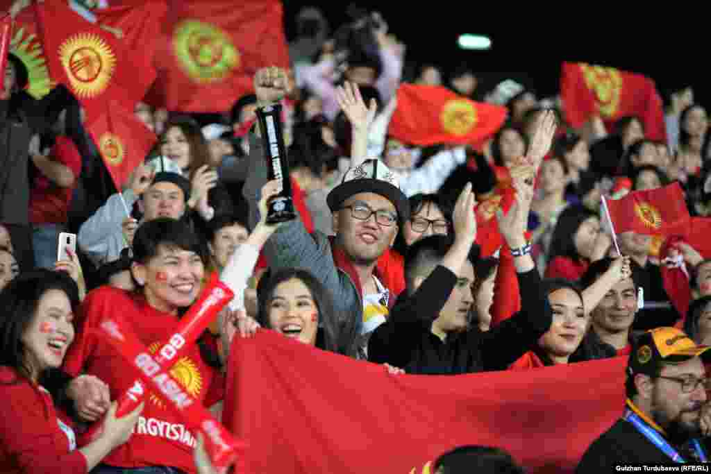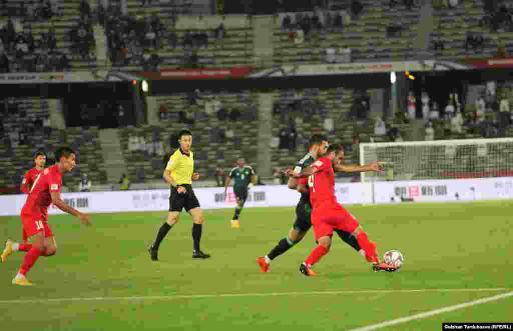 “Шейх Зайид” стадионунда Кыргызстандын гимни жаңырып жаткан учур.