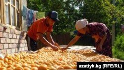 - Азыр жеңеме жардам берип жатам. Кийин окуу башталганда кийим сатып беришет. Өрүктү мен шыйгырлап (таяк менен сабап) башынан үзүп берем, калгандар болсо теришет. Мен алтын күкүрт менен дарылайм, аны жаш балдар жасай албайт, зыян. Кечинде ыска коюп, таң эрте алабыз, антпесе ширеси кетип калат. Анан дайнегин чыгарып, баргек жасайбыз. 100 түп өрүк бар. Инилерим менен 5 кишибиз, 20 күндө жыйнап алабыз.