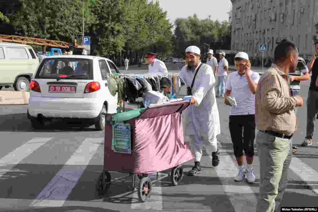 Бишкектеги айт намазы адаттагыдай эле борбордук эски аянтта өтүп, он миңдеген адамдар катышты. (Мирлан Токталиевдин сүрөт баяны)