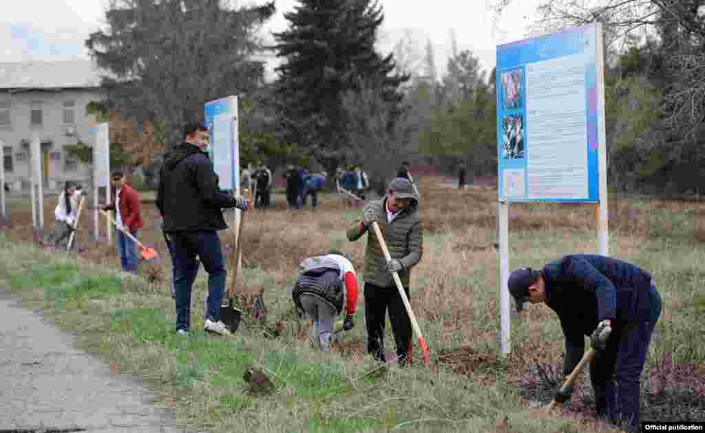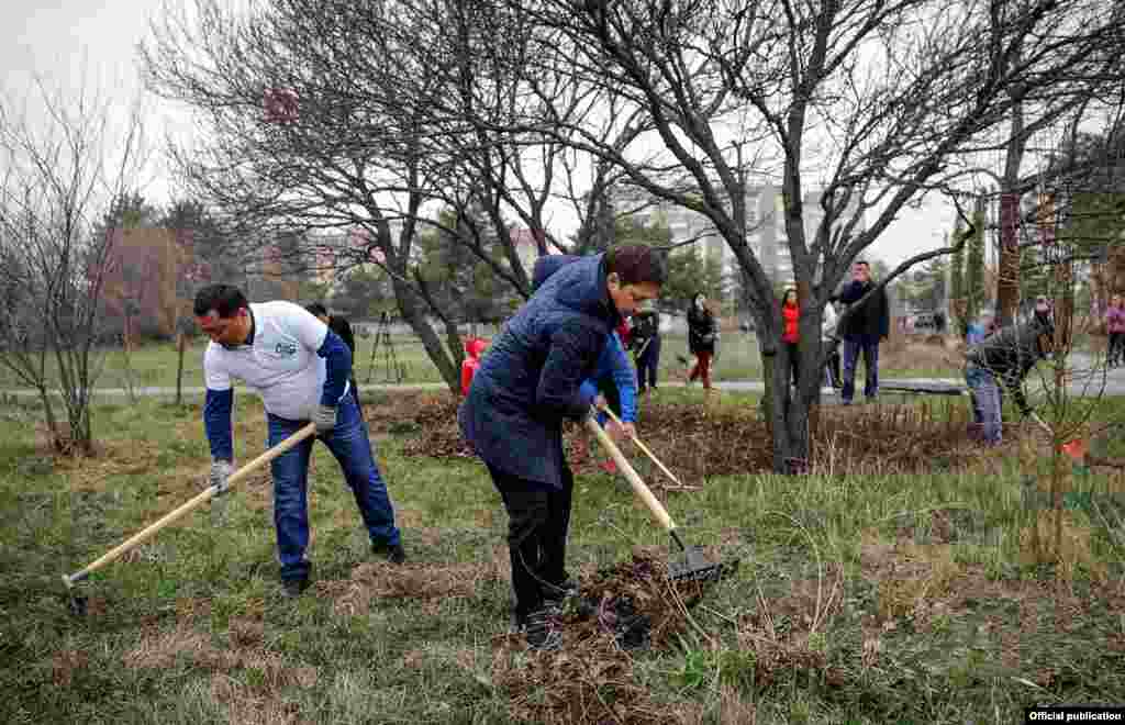 Өкмөт башчы Сапар Исаков Ботаникалык бакты тазалоого барды.