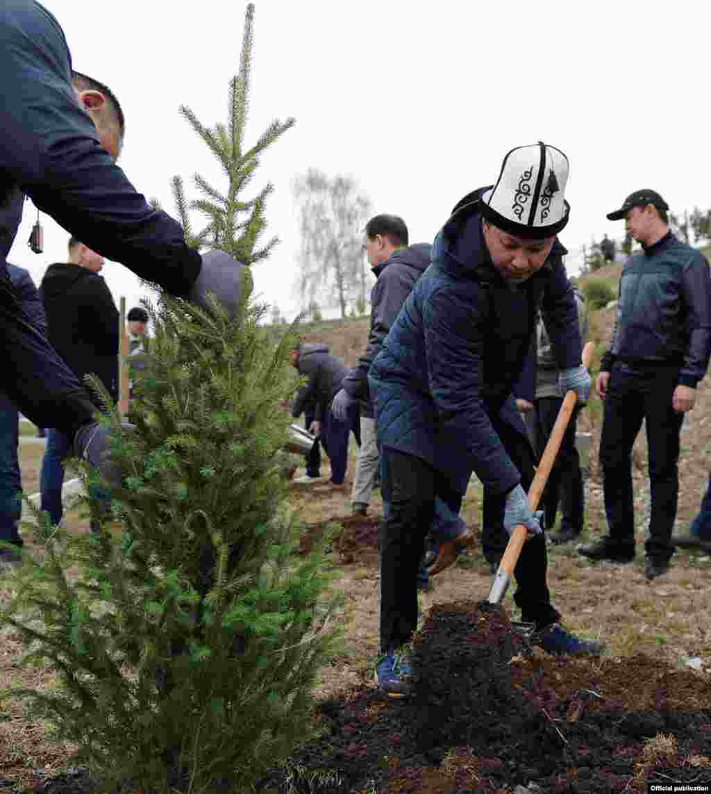 Президент Сооронбай Жээнбеков жана Бишкек шаарынын мэри Албек Ибраимов бүгүн Чыңгыз Айтматов атындагы Эмен багында ишембиликке чыгышты. Бул тууралуу президенттик аппараттын маалыматттык-саясат бөлүмү билдирди. Ал эми өкмөт башчы Ботаникалык бакты тазалоого катышып, көчөт тикти. (Сүрөттөр президенттин жана өкмөттүн басма сөз кызматтарыныкы)