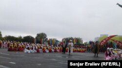 Майрамдын күндүзгү бөлүгү секелек кыздардын кыргыз, өзбек, орус тилдериндеги “Бизге тынчтык керек” деген ыры менен жыйынтыкталды. Иш-чаранын башында аткаруучулардын бири, он жаштагы Диана Токтосунованы кепке тарттык: