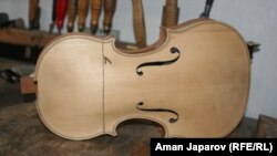 - Колуңузда скрипкага окшош аспаптын үлгүсү жасалып жатыптыр. Бул эмне деген аспап?