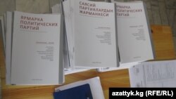 Саясий партиялардын жармаңкеси буга чейин төрт облуста өткөн. Караколдогу жармаңкеге сегиз партия катышты. Борбордук шайлоо комиссиясынын төрагасынын орун басары Гүлнара Журабаева жармаңкелердин бардыгында эле партиялардын саны ондун тегерегинде болуп жатканына токтолду.