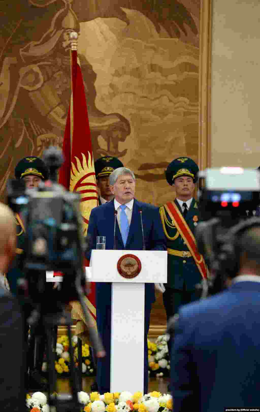 Инаугурацияга 450 киши чакырылды. Бул салтанатка жалпысынан 8 млн 404 миң сом сарпталары кабарланды. Кыргызстанда мамлекет башчы алты жылга шайланат. Ушуну менен экинчи ирет өлкөдө президент тынч жол менен алмашууда. 2010-жылы референдум аркылуу шайланып келген өткөөл мезгилдин президенти Роза Отунбаева 2011-жылы 1-декабрда Алмазбек Атамбаевге мамлекет башчылык кызматты өткөрүп берген.