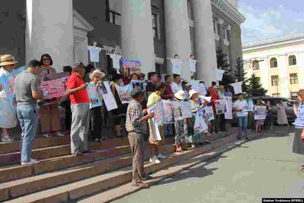 Алар калаа башчылыгына КСДП фракциясы гана талапкер көрсөткөнүн сындап чыгышты. Колдоруна шаардык кеңештин депутаттарына нааразылык билдирген жазууларды көтөрүп, алардын тарашын талап кылышты. Сүрөттөрдү Гүлжан Турдубаева тартты.