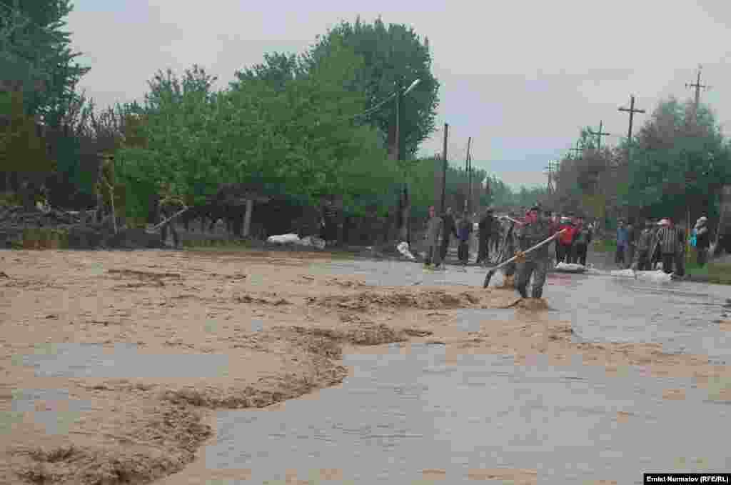Кыргыз чек айылынан аккан сел төмөндөгү Курманжан Датка айылын каптап кирген.