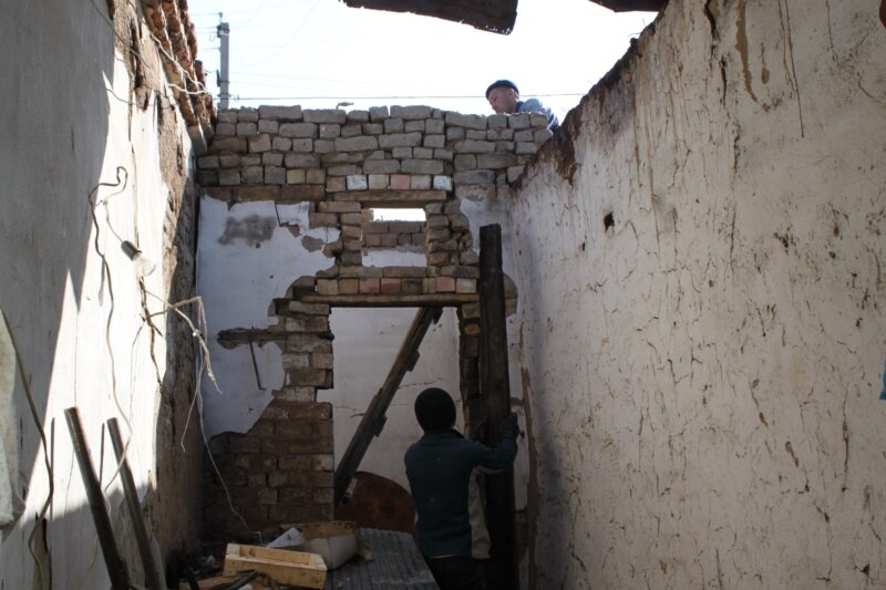 Бузулган тамдардын биринин алдында жашы алтымыштан ашкан апа турган экен. Мухаббат апанын үйүндө да күн жылыгандан бери эле курулуш иштери жүрүп жатат. Алар жолдошу Исмоилжон ака экөө мага эл аралык уюмдар куруп берген эки бөлмөлүү үйдү көрсөтүштү.