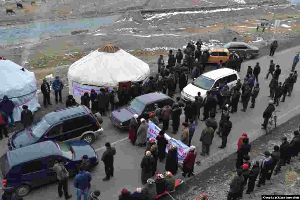 Ош - Эркеч-Там жолу 24-ноябрдан бери Акматбек Келдибековдун туулган айылы Сопу-Коргондун тушунан буулуп турат. Жол тоскондор депутат Келдибековдун үй камагына бошотулушун талап кылууда. Сопу-Коргон, 24-ноябрь, Тойчубек Артык уулунун сүрөттөрү, Kloop.kg