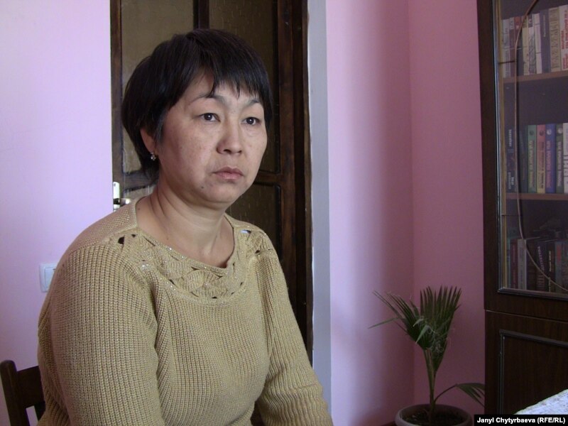 - ... талтайтып алып эле, буту-колунан байлап алып эле (зордукташты). "Силер биздин карындаштарыбызды ушундай кылып өлтүргөнсүңөр" деп (айтышты). Эки кызды алмак-салмак чачтарынан кармап алып, өздөрүн сордура беришти, ак ириң чыккандан кийин, аны кыздардын бетине чачып атышты. Расса кыйнагандан кийин, оозуңа албасаң, сигарет басабыз дешти. Оозумду ачпасам, бутума сигарет басышты. Мына, мурдум жарылып кетти.
