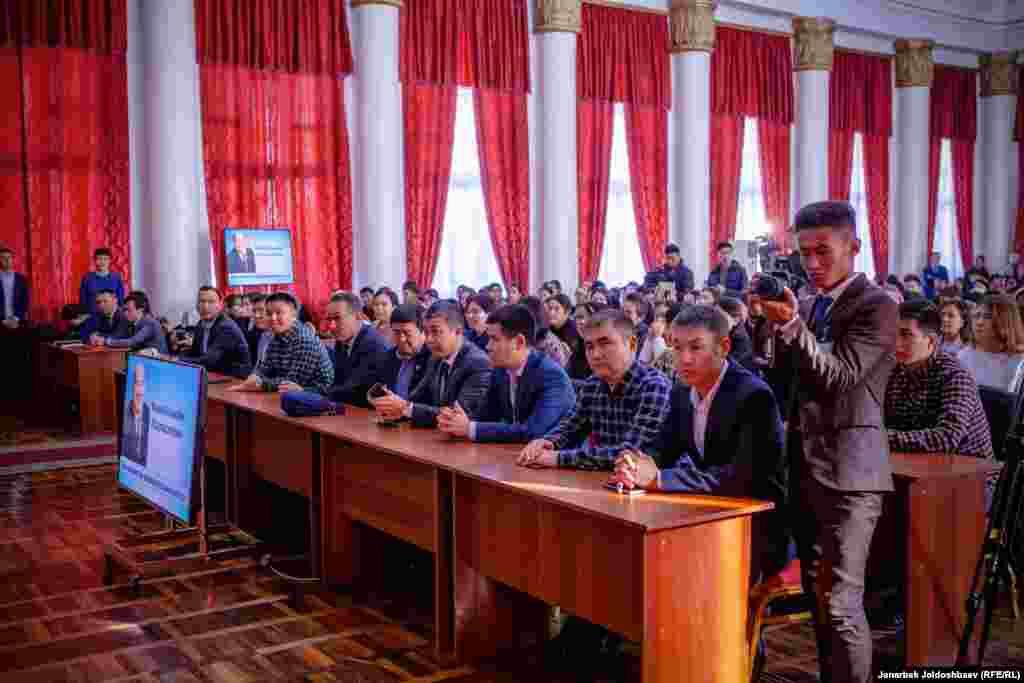 “Азаттыктын” жетекчилиги жана аталган окуу жайын бүтүрүп, бул радиодо эмгектенип жаткан журналисттер студенттер менен жолугуп, баарлашты.