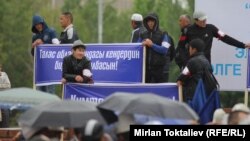 Ал эми Ала-Тоо аянтындагы митингге анык жолбашчы жетпеди. Баарын тегеретип жаткан Азимбек Бекназаров кеп-кеңеш берүү менен чектелерин айтып, митинг башында туруудан баш тартты: