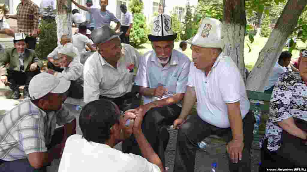 Ишембиде Жалал-Абад шаарында нааразылык акция улантылды. Облустук бийликтин имаратын ээлеп алган митингчилерге өкмөттүн өкүлдөрү сыртынан көз салууда. Акимиаттын короосунда жылкы эти асылып, катышуучуларга ысык тамак берилди. Шаардыктар бул көрүнүшкө ар түрдүү пикирде. Акциянын уюштуруучулары нааразылыкка катышкандардын саны эки миңдей десе, байкоочулар 300гө чамалаш адам болгондугун айтышты.