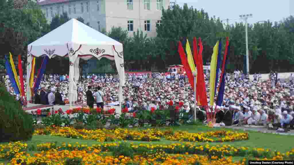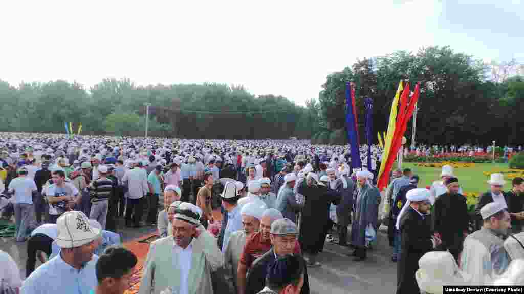 Ош шаар мэриясынан аянттагы намазга 20 миңге чукул адам келгенин кабарлашты.