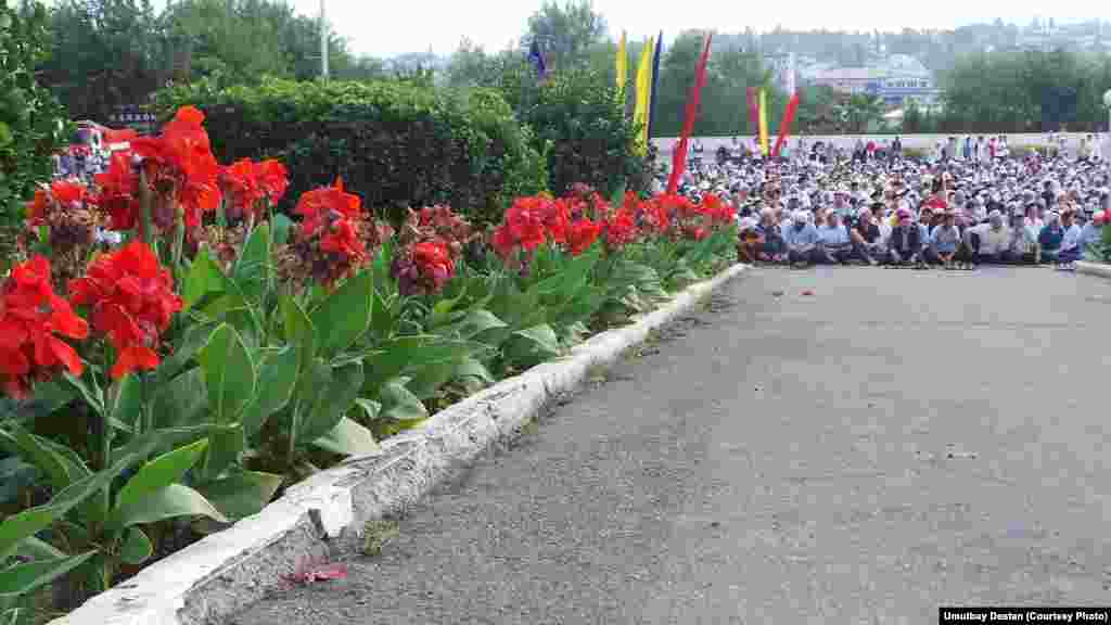 Орозо айт намазы Ош шаарынын борбордук аянтында да окулуп, ага премьер-министр Жантөрө Сатыбалдиев катышты. ("Азаттыктын" блогери Дастан Үмөтбай уулунун сүрөт баяны)