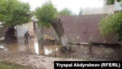 - Азыр үйдө эч ким калган жок. Сел баспаган жерге чыгарып койдук аларды. Сел эккен эгинди да калтырган жок. Гүлдөгөн бадыраң, сабиз, пияз, мына көрүп турасыз, ылайдын алдында калып кетти. Суу үйлөрдүн ичине дейре кирип кетти. Андан акканы акты, акпаганы калды. Эски тамдардын дубалдары кулап түштү жамгыр катуу жааганынан. Үйгө кире элекпиз. Коркуп атабыз, суу тийген дубалдар басып калбасын деп...