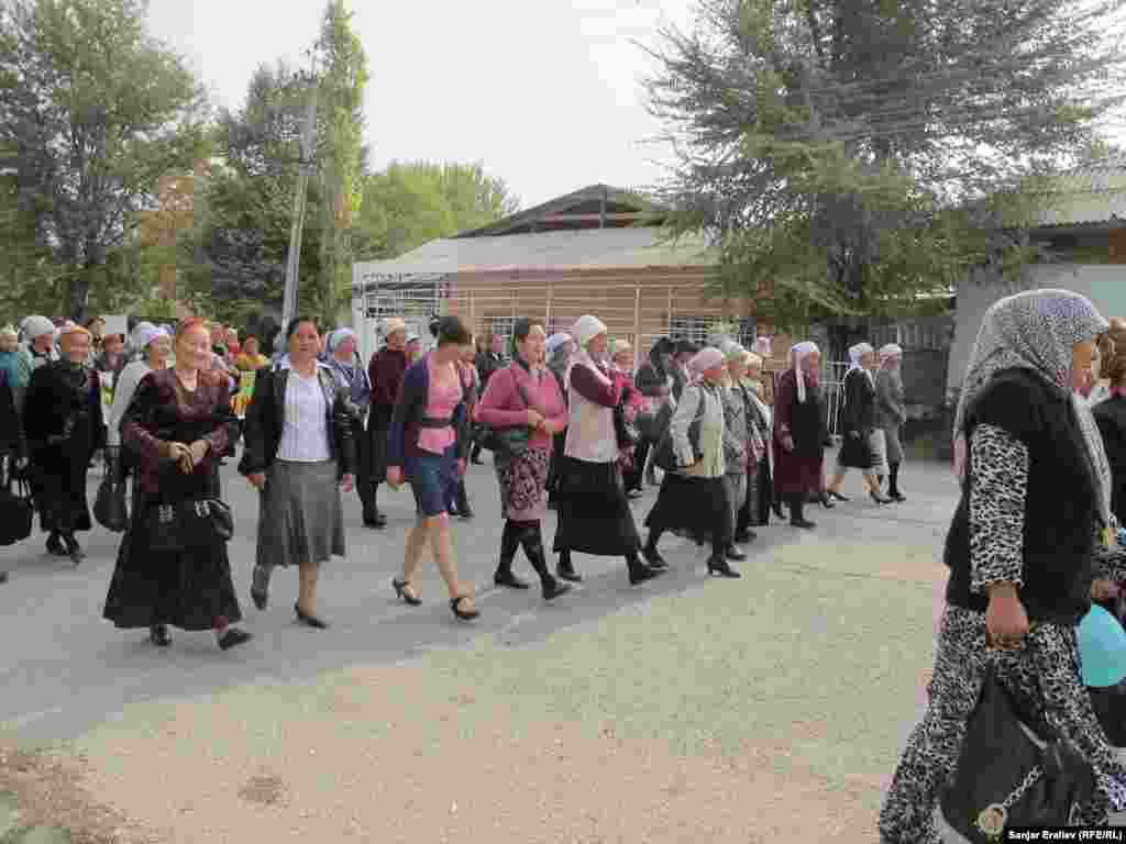 Бул күндүн урматына беш жүздөй аял райондук бийликтин имаратынан маданият үйүнө чейин жөө жүрүш жасады.