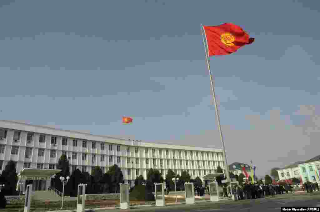 Мамлекеттик туу күнүнө арналган иш-чарага Ош шаарынын мэри Таалайбек Сарыбашов, КРнын Өкмөтүнүн Ош облусундагы ыйгарым укуктуу өкүлү Узарбек Жылкыбаев, Ош шаардык кеңешинин төрагасы, легендарлуу парламенттин депутаттары, мекеме-ишканалардын кызматкерлери, шаардыктар жана жаштар катышты.