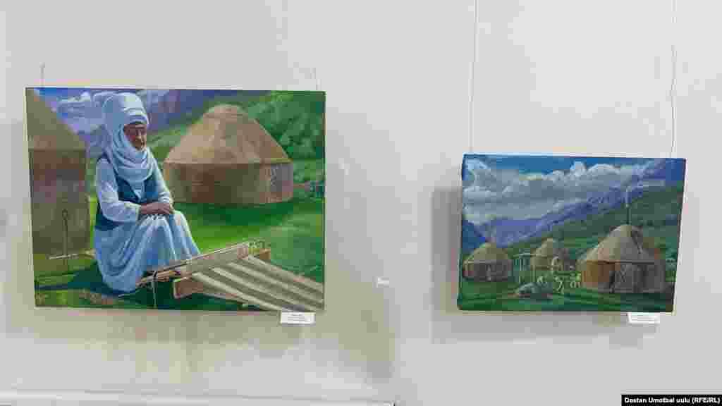 "Он сүрөтчүнүн тарткан сүрөттөрү бирдей эмес. Ар кимдин почерки башка-башка болот. Жаратылыштын, тоолордун, жаныбарлардын көрүнүшүн тартып келдик", - деди сүрөтчүлөрдүн бири Ырыспай Төлөнов.
