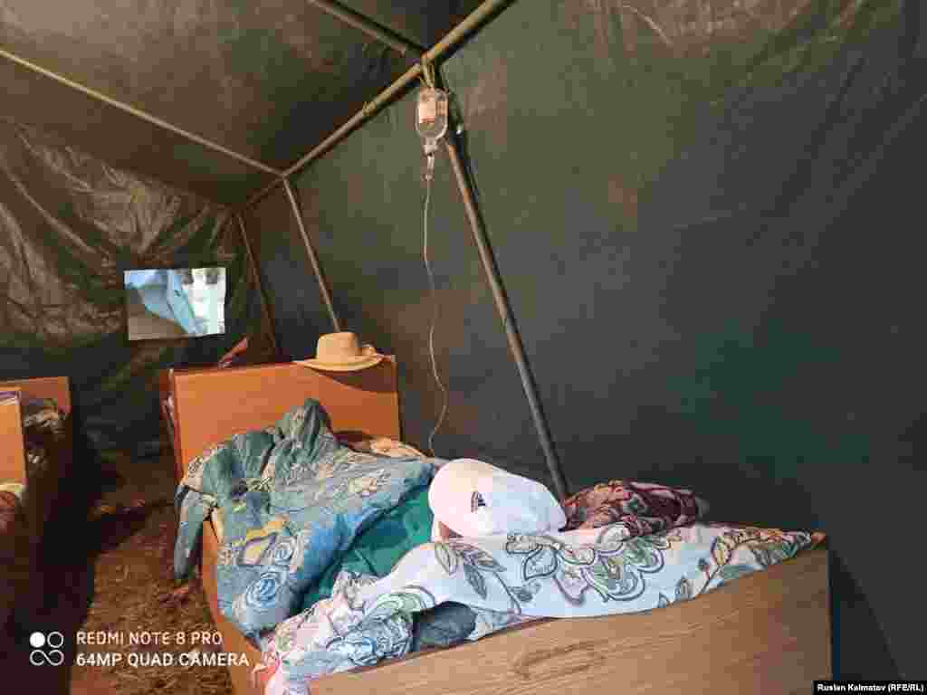 Токтогул шаарындагы үй-бүлөлүк медицина борборунун алдында эки чатырда жайгашкан 12 орундук стационар.