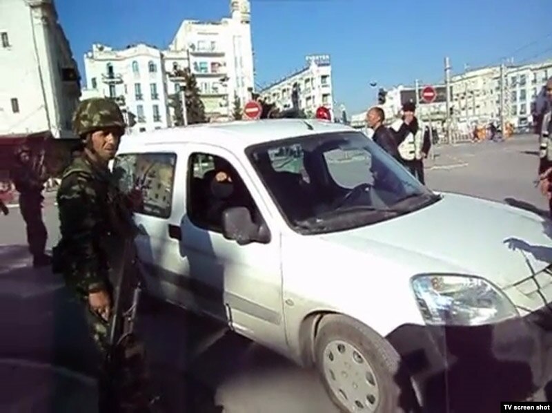 Аскерлер жана полиция автомобилде бараткан шектүү эки адамды кармашты. Тунис. 16-январь 2011