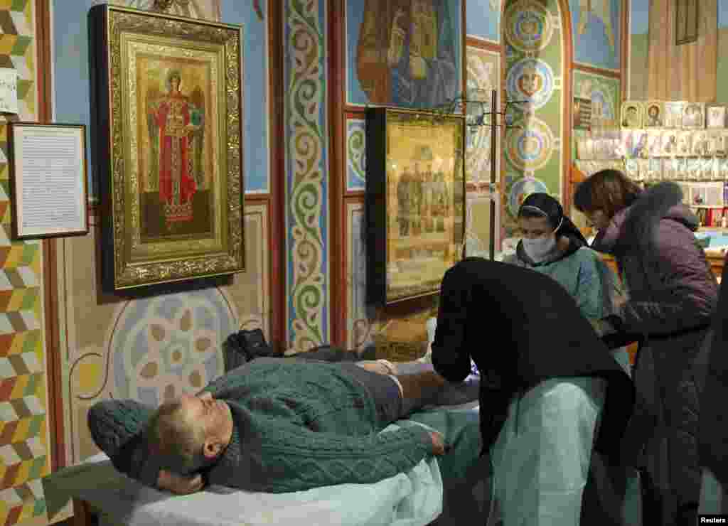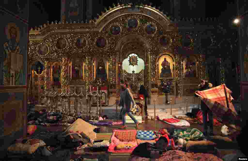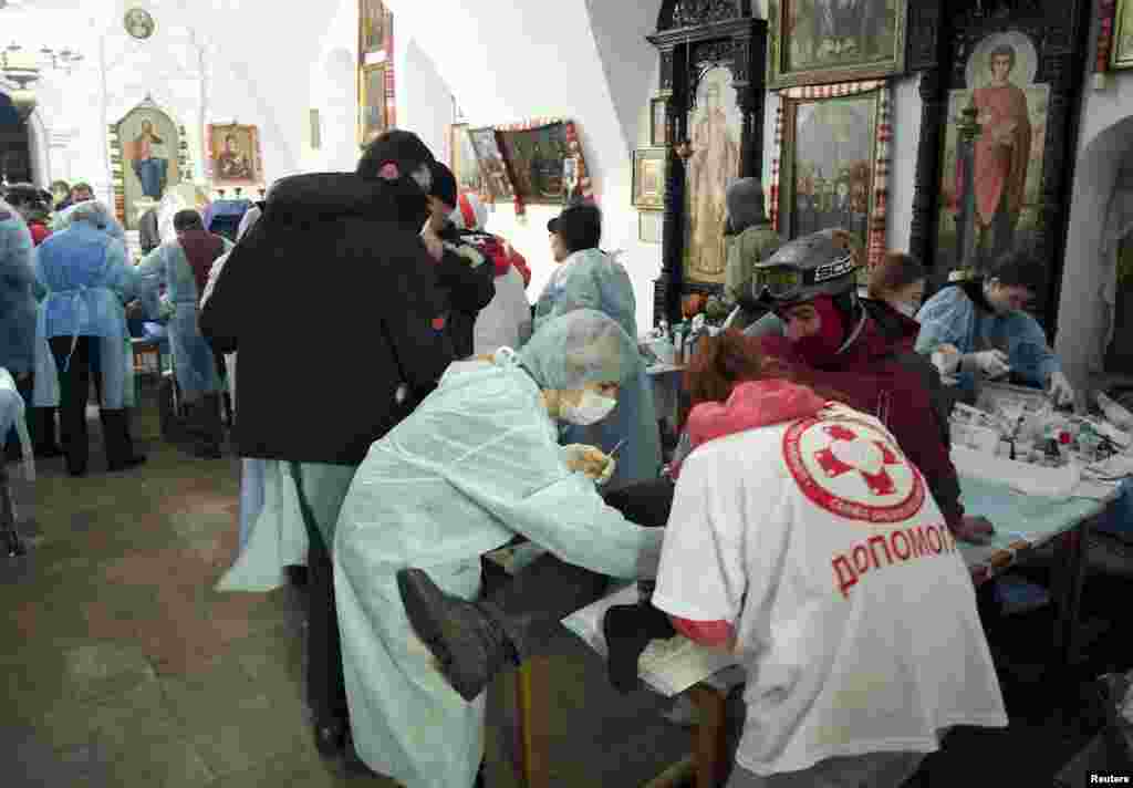 Евромайданда жарадар болгондорду таанымал Архангел Михаилдин чиркөөсүнө алып келип, медициналык жардам көрсөтүшүүдө. XII кылымда түптөлгөн бул ыйык жай шаардыктар үчүн өзгөчө мааниге ээ, бул жерде киев княздарынын сөөктөрү коюлган. Өткөн жылдан бери бул храм өкмөткө каршы акциялардын катышуучулары үчүн сыйынуучу жай болуп калган. Киевде 18-февралда башталган кандуу кагылыштарда 60тан ашуун киши өлүп, жүздөгөн адамдар жарадар болду.