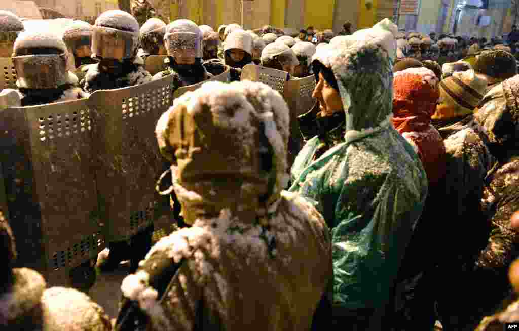 Киевдин борборунда бийликке каршы нааразылыкка чыккандарга атайын күчтөрдүн ок чыгаруусу аянтта тургандарды тарата алган жок. 9-декабрдын түнүндө жааган карда кыштын ызгаарына карабай нараазылыкка чыккандар өкмөт үйүнүн алдында турушту.