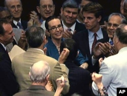 Нааразы демократтар, нааразы республикачылар Конгресстин төмөнкү палатасындагы азчылыкты түзгөн демократтардын лидери Ненси Пеллози демократтарды добуш берүүгө көндүрө алды.