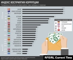 Эски совет аймагынан эң жакшы көрсөткүч Грузияныкы - 57-орун. Орусия былтыркыдан 12 баскычка төмөндөп, 131- орунга түшкөн. Украина, Казакстан да ушул эле орунда. Орусия быйыл да 29 балл алган, бирок орду төмөндөшүн "Трансперенси Интернешнл" быйылкы баяндамада мамлекеттер саны көбөйгөнү менен түшүндүрдү.