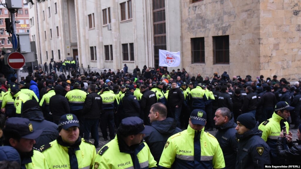 Тбилисидеги парламент имаратынын алдындагы нааразылык акциялары былтыр ноябрдын ортосунан бери өтүп келди. Полиция бир канча ирет митингчилерди суу атып таратууга аракет кылды. Акцияга чыккандардын лидерлери бир нече ирет кармалып, административдик айыпка жыгылган.