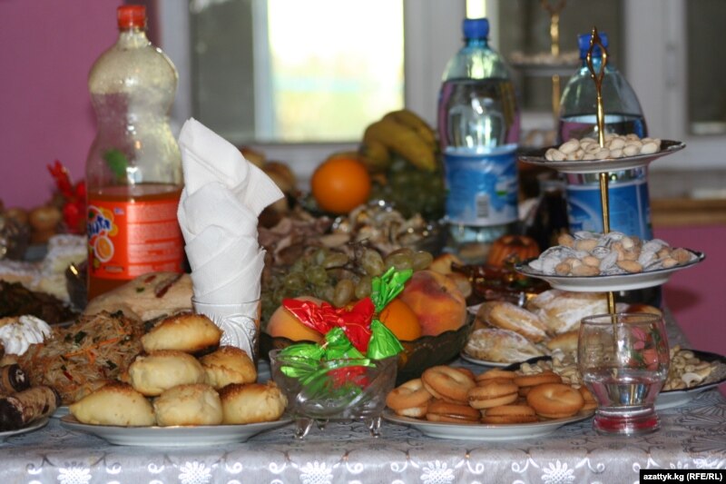 - Мисалы, өлүм болгондо үч күн үйдөн тамак жасабайт, түтүн чыкпаш кеерк. Мындайча айтканда аза күндөрү болуп эсептелет. Кошуналар тамак-аш алып келип берип турат. Ал эми төртүлүгү болгондо куран окутуп, кой союп анан кишилерди чакырат.