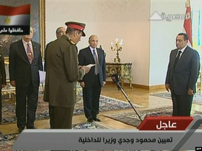 Мубаракка 31-январда ант берген жаңы министрлердин көбү эски өкмөттүн мүчөлөрү. Алардын арасында элге жек көрүндү ички иштер министри Хабил ал-Адлы, финансы жана маданият министрлери жок. Ички иштер министри болуп, генерал Махмуд Вагдинин дайындалышы толкуган элди ого бетер кыжырдантты. Вагди буга чейин Каир полициясынын кылмышкерликке каршы күрөшүү башкармалыгын, андан мурда өлкөнүн түрмө жайларын жетектеген. Лондондук талдоочу Фаваз Жержестин “Азаттык” радиосуна айтышынча, демонстранттар жаңы өкмөт Мубарактын артында турган аскерий төбөлдөргө жакын деп эсептешет: